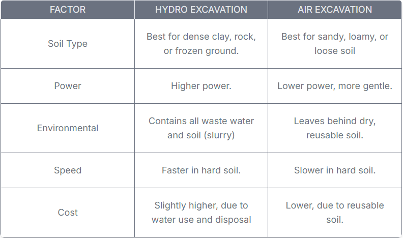 The best choice between hydro excavation and air excavation depends entirely on the specifics of your project. Here is a simple breakdown to help you decide: